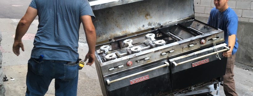 All the old equipment is gone! The old duct work, fans and hood, the old stove, dishwasher, convection oven and icemaker. Just getting that old stove out of the building was a real challenge!