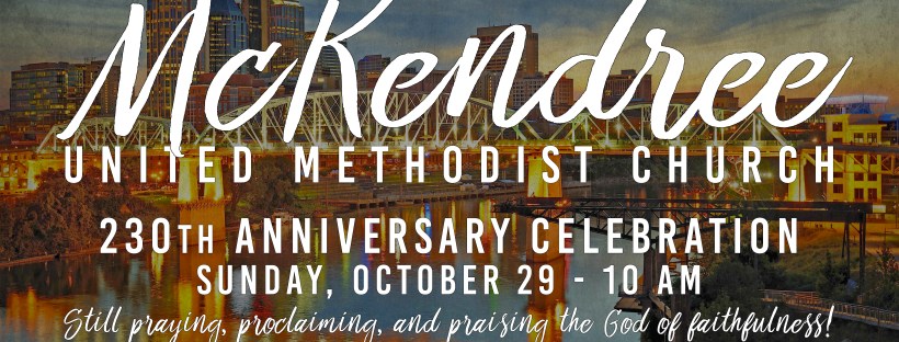 230th Anniversary -- October 29, 2017 We celebrated the 230th Anniversary of McKendree Church on Sunday, October 29th and if you missed it – well, you missed a great morning of praise and worship! Our combined choir and praise team had excellent music and led us in praise. Erica Johnson allowed us to experience worship … Continue reading Church Anniversary Celebration!