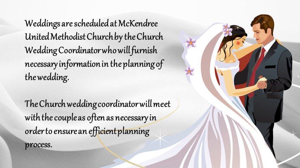 place. McKendree places a high value upon the wedding as a spiritual act of God. As an act of