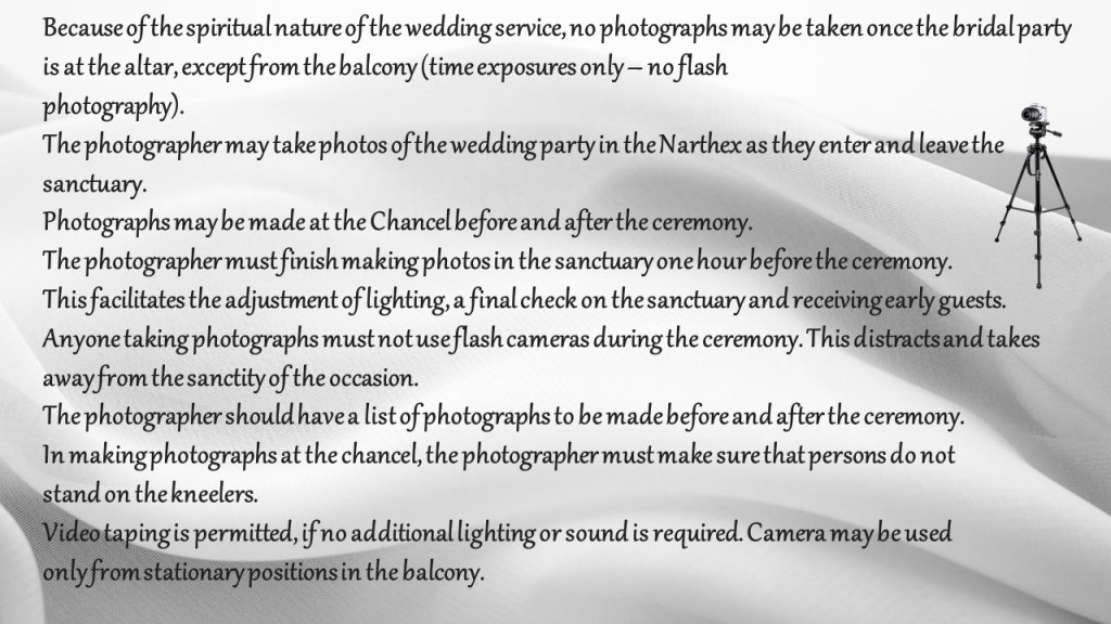 Rehearsal and Wedding, Church Usage (chapel or sanctuary)
